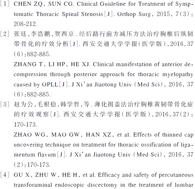 排除标准:①合并颈椎、腰椎疾病;②不能耐受手术者;③既往胸椎手术史。