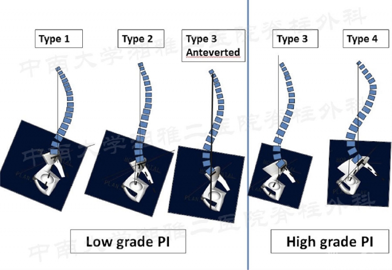 2017年,Roussouly教授团队将相对稳定的PI值作为分型标准对Roussouly分型进行改进:低PI值的1型、2型和骨盆前倾3型;高PI值的3型和4型[3]。临床医生制定术前手术计划时,可以参考与患者PI匹配的Roussouly分型恢复脊柱矢状位曲线。
