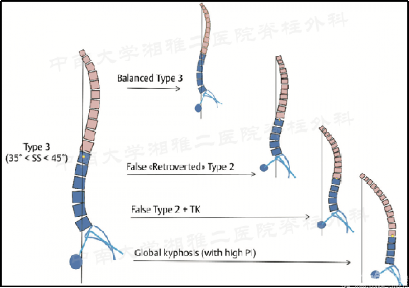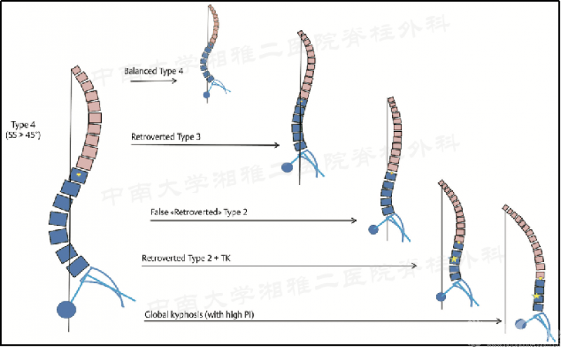 图3 Roussouly分型1、2、3、4型可能演变的矢状面形态亚型;图片来源:Sebaaly A.Eur Spine J,2018,27(2):489-496