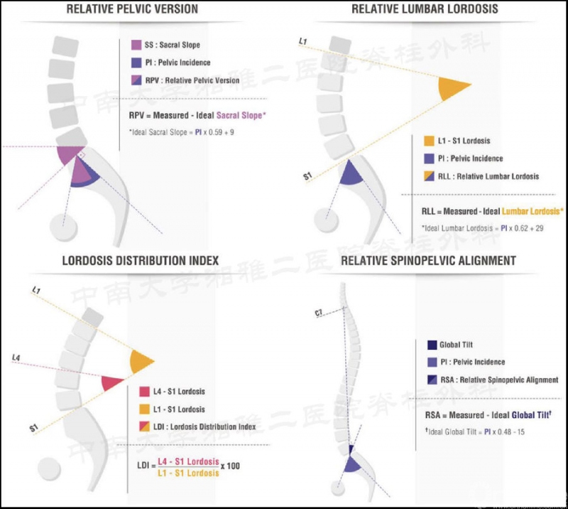 1) 相对骶骨倾斜(RPV)=SS(测量值-理想值);