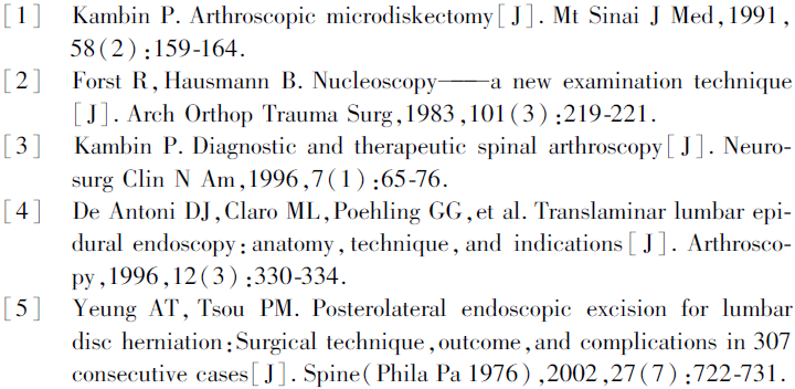 在目前脊柱内镜全程监视下手术操作技术出现之前,早在上世纪80年代就提出的经皮髓核切除术基础上,将关节镜引入腰椎间盘突出症的手术治疗[1]。
