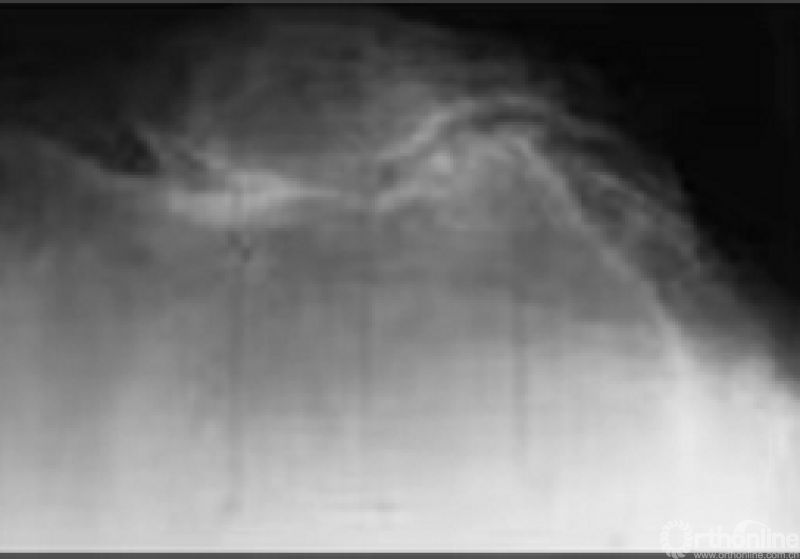 可复性关节内畸形,屈曲20°,外翻应力位X线片。