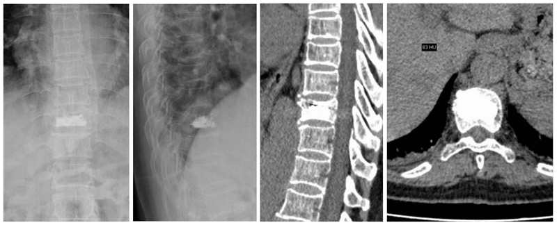 [25] Baek IH, Park HY, Kim KW, et al. Paraplegia due to intradural cement leakage after vertebroplasty: a case report and literature review[J]. BMC Musculoskelet Disord, 2021, 22(1):741. DOI: 10.1186/s12891-021-04625-7.