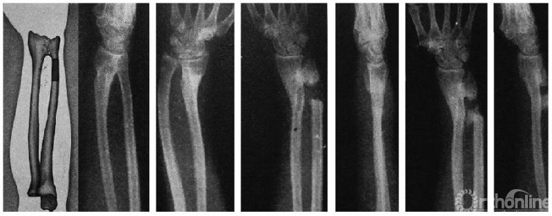 美国医生George在1876年发表的关于美国南北战争外科学史的书籍中总结了19例尺骨远端切除术的疗效。