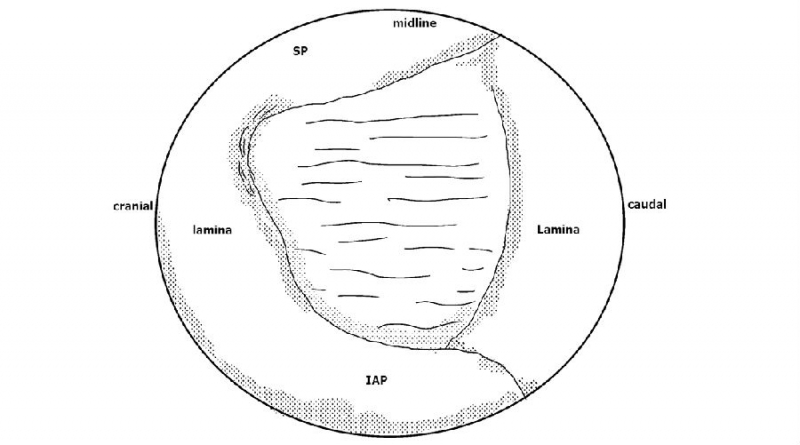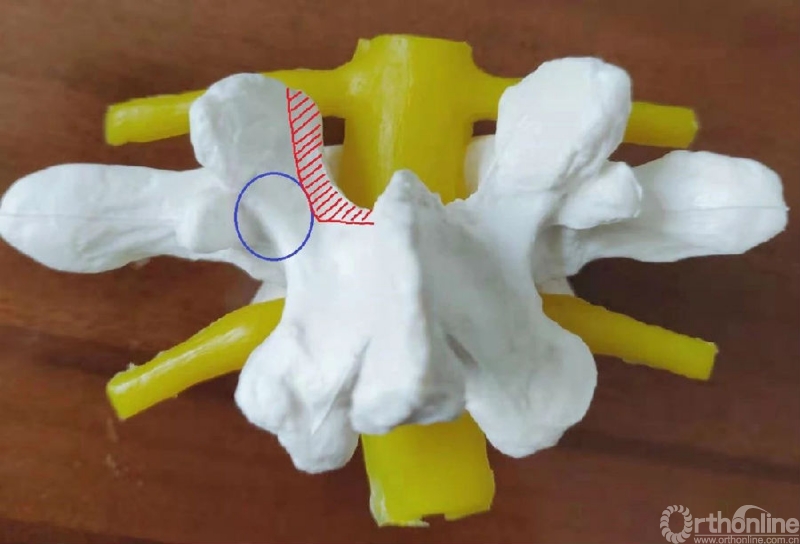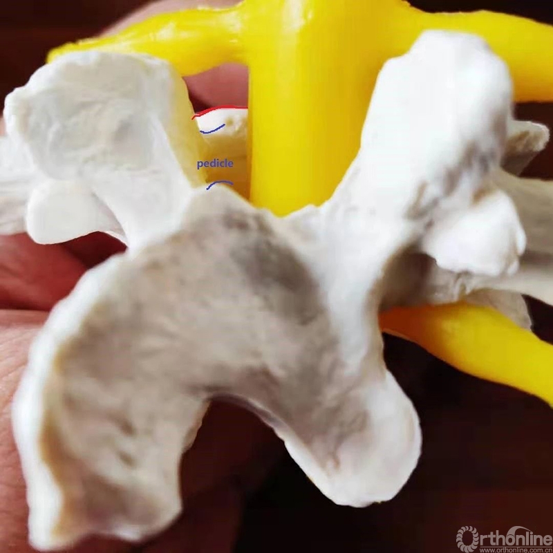 从标本上看,椎弓根其实就位于终板的下方,这是术中判断椎弓根位置的解剖标志。