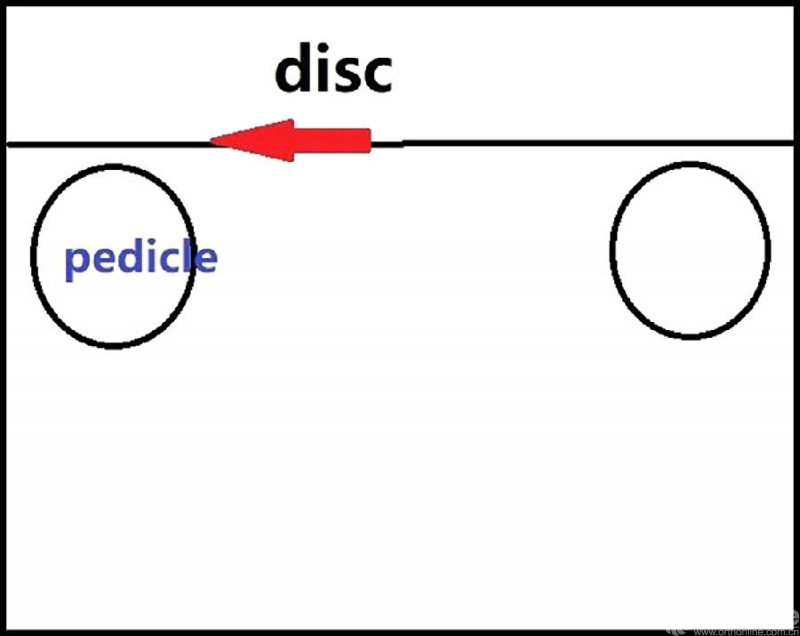 与椎间盘的下缘平齐即是椎弓根的上缘。