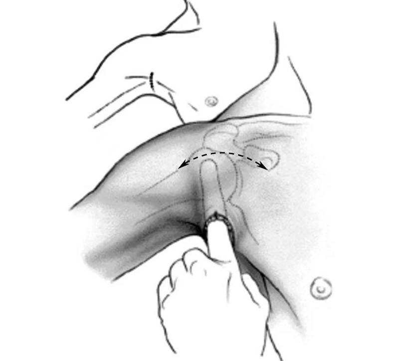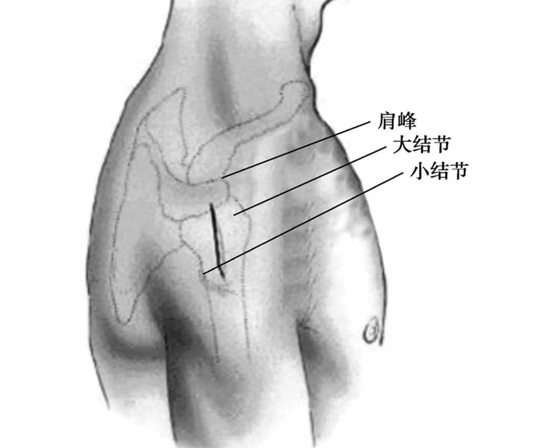 肩关节前侧入路有腋部切口和前部切口,其中腋部切口起自腋前皱襞中点,向腋窝部延伸8~10cm(图1),前部切口起自喙突,沿三角肌胸大肌间沟,止于上臂三角肌止点处(图2)。