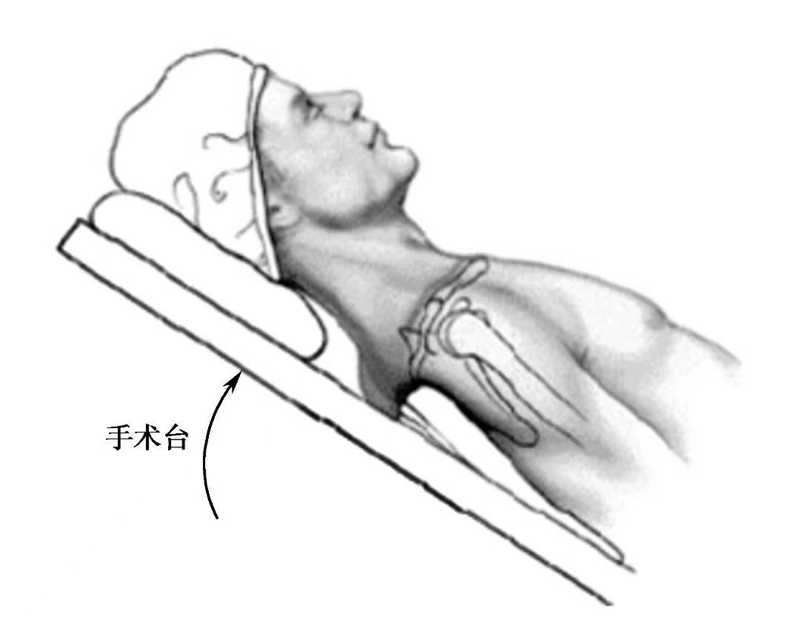 患者取沙滩椅位,手术台头侧抬高30°~45°,患侧肩胛骨内侧及脊柱垫高(图3)。
