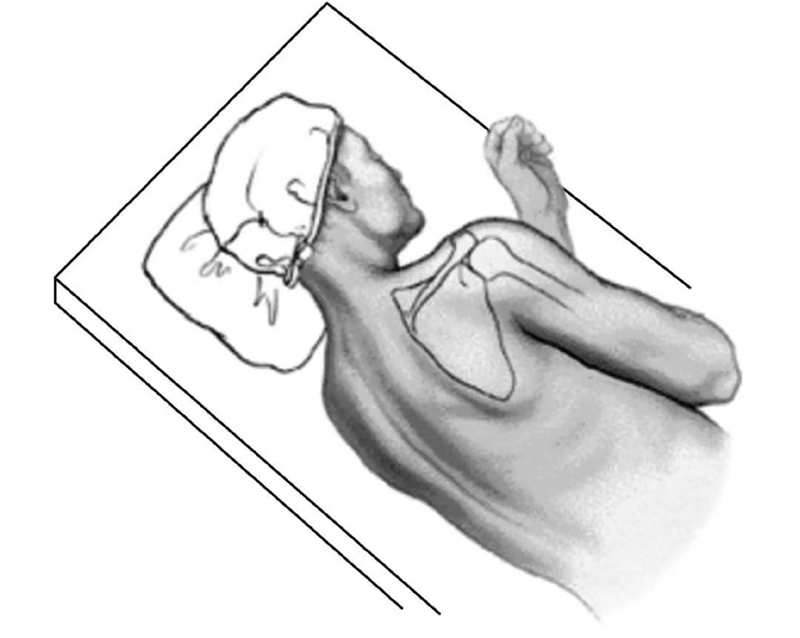 患者取健侧卧位,注意固定骨盆前后,患肢游离便于术中活动(图10)。