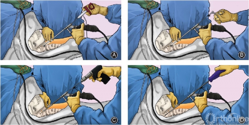 图5 脊柱内镜辅助下齿状突螺钉固定技术