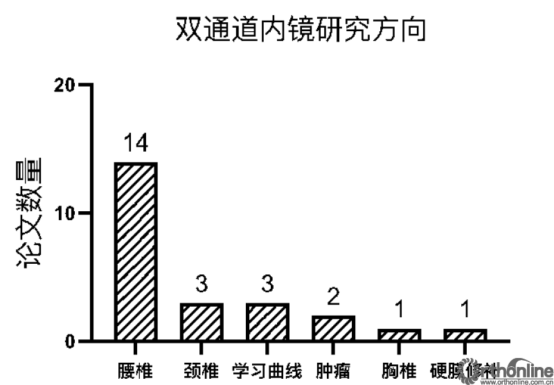 图6 单/双通道脊柱内镜论文热点研究方向