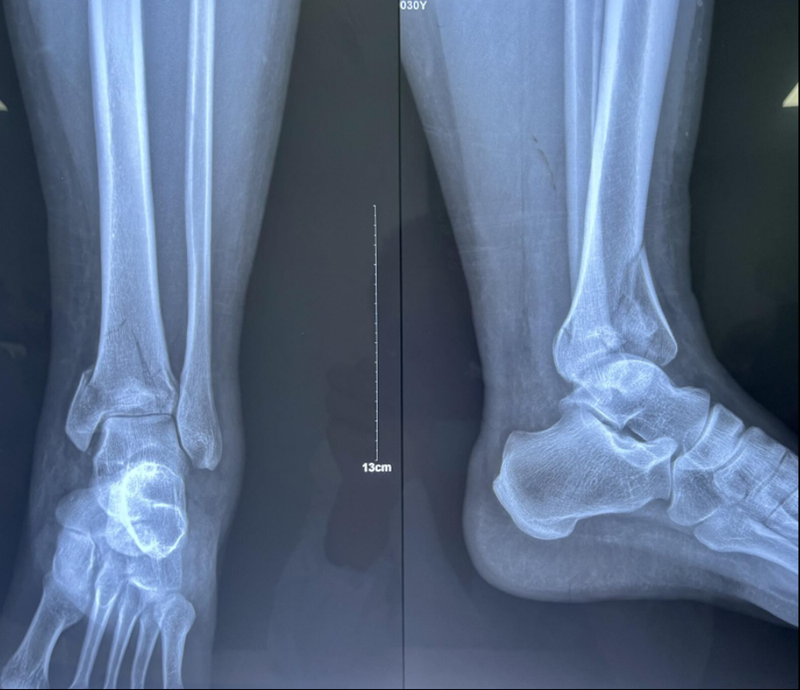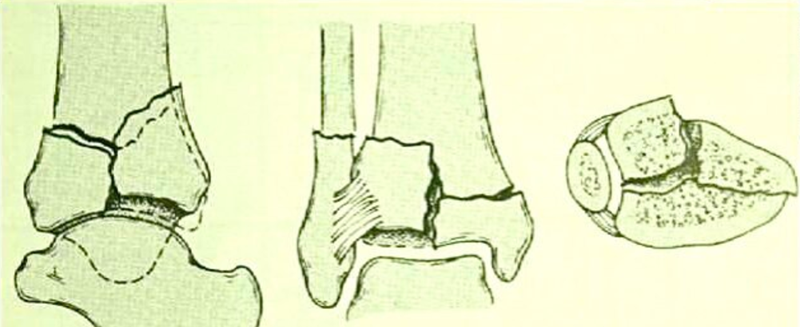 图3 Ⅰ型:没有移位的踝关节劈裂骨折