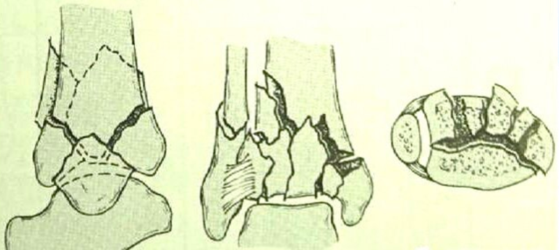 Pilon骨折多为高能量损伤自高处坠落所致,通常合并跟骨骨折、胫骨平台骨折、骨盆及椎体骨折。其特点为高能量、不稳定、软组织损伤。