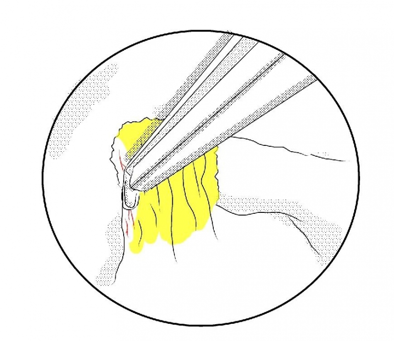 1. 显露局部峡部区域解剖,峡部是第一dock点。
