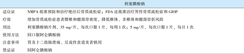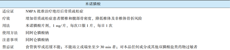 双膦酸盐是目前临床上应用最为广泛的抗骨质疏松症药物。目前用于防治骨质疏松症的双膦酸盐类药物主要包括:阿仑膦酸钠、唑来膦酸、利塞膦酸钠、伊班膦酸钠、和米诺膦酸等。不同双膦酸盐抑制骨吸收的效力存在明显差别,因此临床上不同双膦酸盐药物的使用剂量及用法也有所差异。