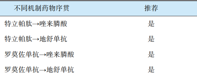 ①特立帕肽序贯双膦酸盐类药物或地舒单抗治疗,可有效增加骨密度,降低骨折风险,是较为合适的序贯治疗模式。