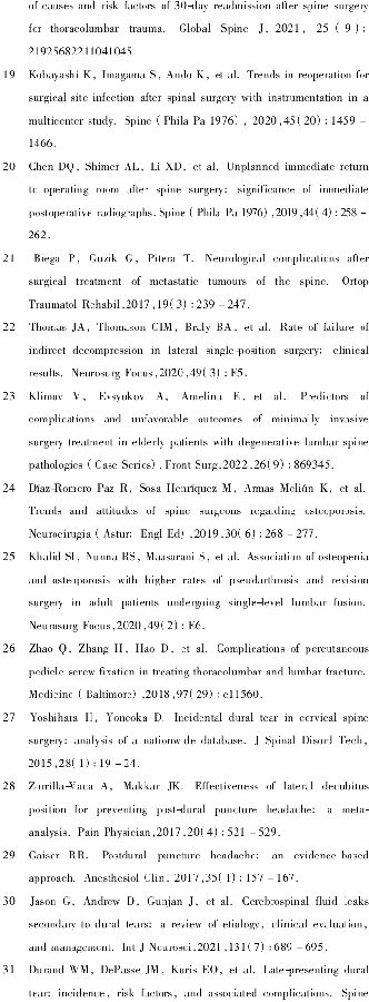 3. 腰椎退变融合手术UPR的常见危险因素