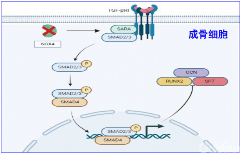 2、Nox4通过TGF-β信号通路促进成骨细胞分化