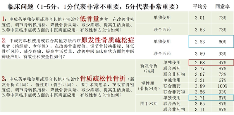 恒古骨伤愈合剂联合活性维生素D 12月,可提高中医证候积分有效率(2C)。