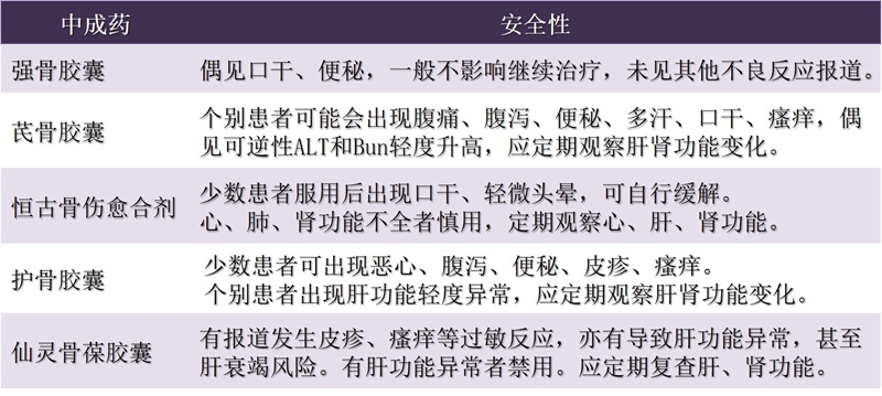 中医学认为OP 属于“骨痿”“骨枯”“骨痹”的范畴,其发病机制与肾密切相关,其次是脾胃、肝等,治疗通常采用补益肝肾、壮骨、益气健脾等方法。因中成药服用方便,疗效稳定,不良反应小,已经成为临床治疗OP 的重要方法,可以补充西药在OP 治疗中的不足,而且可以增加其在OP 治疗中的作用效果,同时可以减轻其毒副作用。然而,中成药的临床应用仍存在诸多问题,合理、规范使用中成药准则亟待制定。