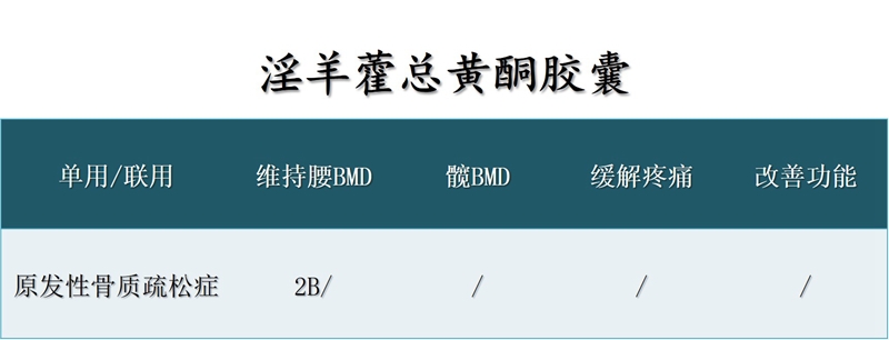 淫羊藿总黄酮胶囊单独使用6月,可维持腰椎骨密度值(2B)。