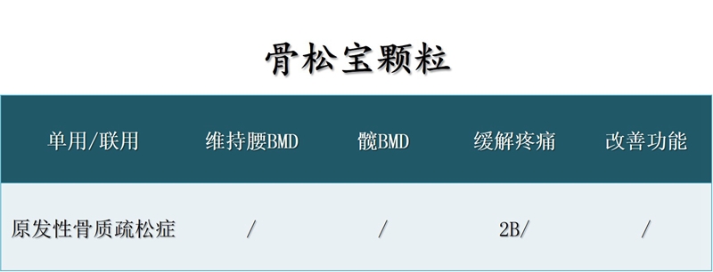 骨松宝颗粒单独使用3月,可减轻骨痛积分(2B)。