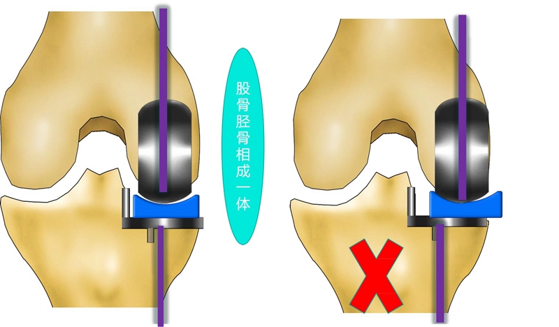 运动学对位对线定位技术的原理核心为:①胫骨精确截骨,保证力学;②spacer充分填充,恢复到自然状态。
