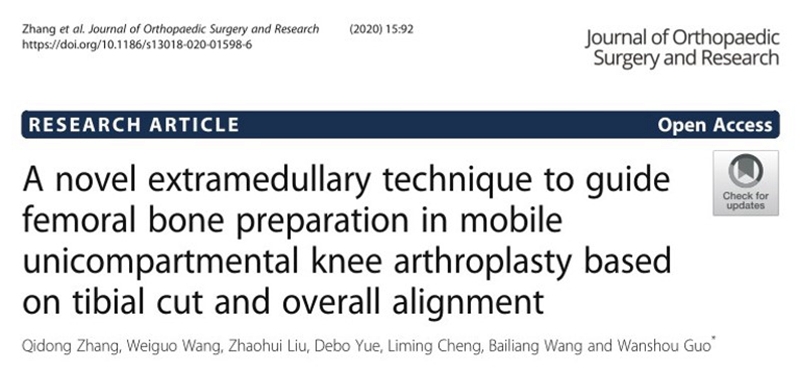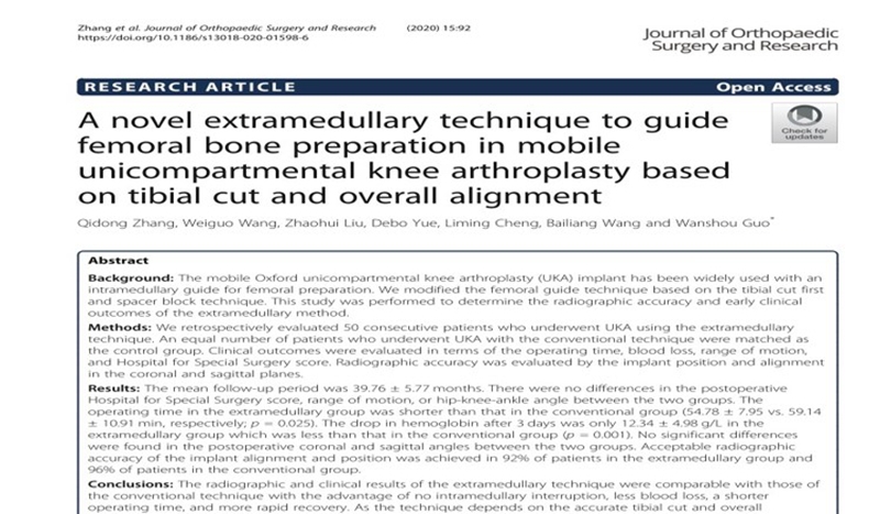 [5]Zhang Q, Wang W, Liu Z, et al. A novel extramedullary technique to guide femoral bone preparation in mobile unicompartmental knee arthroplasty based on tibial cut and overall alignment[J]. J Orthop Surg Res,2020,15(1):92.