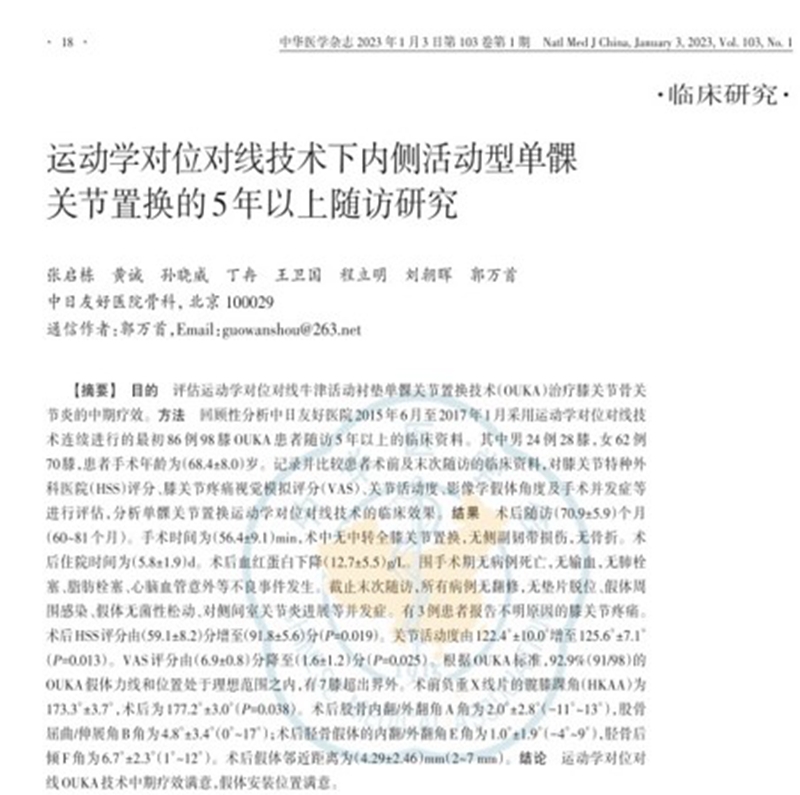膝关节单髁置换(UKA)作为终末期膝骨关节炎常规手术方式之一,因其疗效确切、创伤小、恢复快、并发症少等优势,不断被广大矫形外科医生所接受,手术量逐年增长。