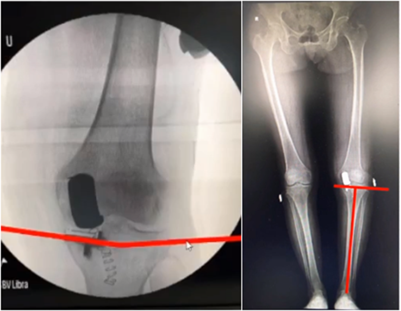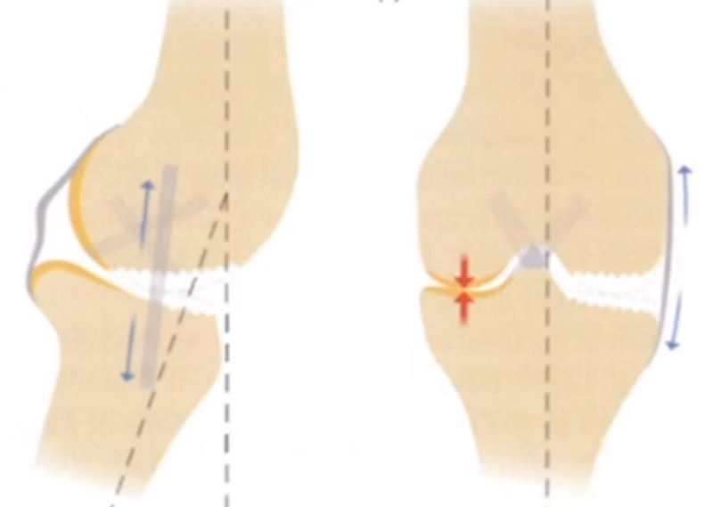 但实际术后需要通过全长片来判断是否能取得好的力线,判断有无过度矫正或矫正不足的情况出现。还需要通过全长片区分内翻畸形的来源在哪里,是否能矫正,对适应证的选择有一定帮助。如果术后下肢整体力线外翻3°,则说明外侧间室压力明显升高。