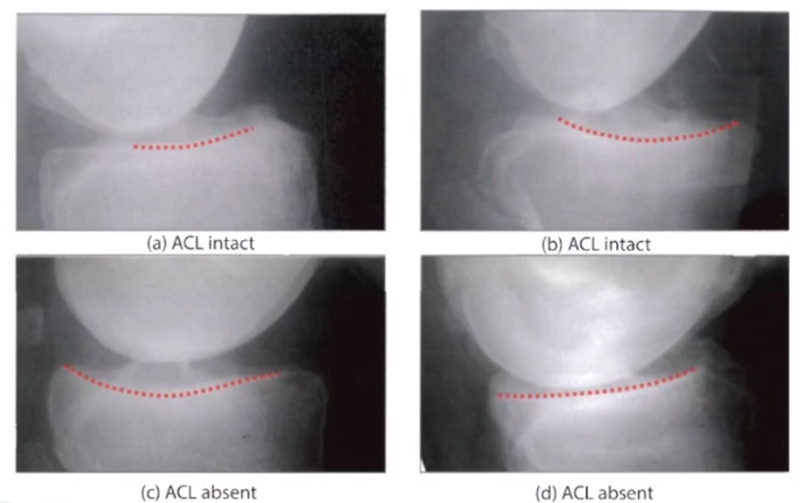 4、标准侧位片胫骨磨损中前方——ACL功能正常;