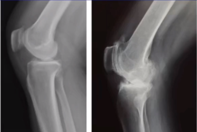 1、内侧间室关节间隙消失——内侧骨磨骨;
