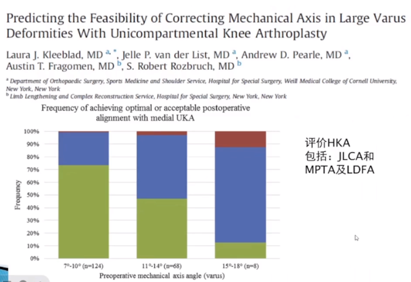 小结:对于下肢整体力线,首先保证术后力线不能外翻,术后力线内翻不能超过10°,而术前关节外畸形不能超过10°。