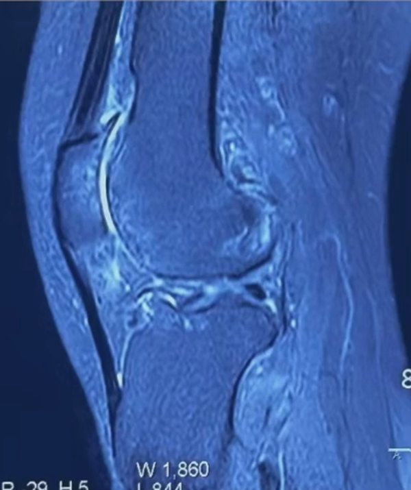 术前MRI显示:软骨破坏,形成骨磨骨。