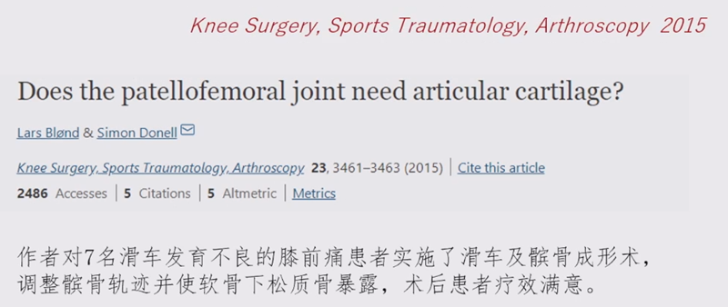首先,髌骨关节成形术能够恢复合适的髌股关节运动轨迹。很多文献报道中强调,在髌股关节中,合适的运动轨迹比“正常的”关节软骨更重要。