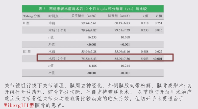结合影像学检查,该患者不适合做关节置换,最终选择关节镜探查后,切开行髌骨成形术。