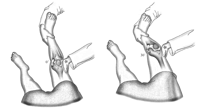 体格检查:包括评估膝关节的疼痛部位、肿胀程度、血肿位置以及膝关节稳定性,可初步判断MCL的损伤部位与程度。膝关节的稳定性检查包括前后、内外翻和旋转稳定性检查。