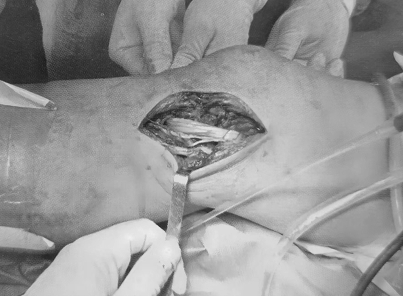 对于陈旧性膝关节MCL损伤,撕裂的韧带断端回缩、瘢痕粘连等可导致MCL在非功能位愈合(或不完全愈合)和残留松弛,应行重建手术,重建方法分为功能重建和解剖重建。