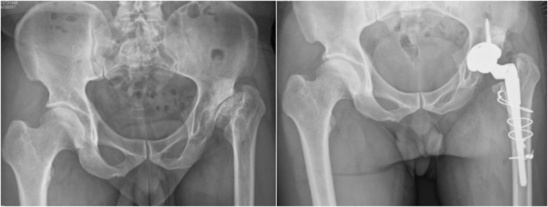 全髋关节置换术具有优异的疼痛缓解、稳定可靠的固定及良好的功能恢复和长期随访结果等优点,常用于治疗各种晚期髋关节疾病。在全髋关节置换中,畸形常发生在股骨侧,非常难处理,是髋关节置换中难题之一。