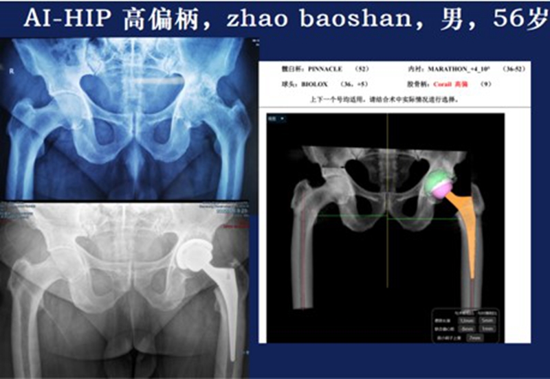 髋内翻,颈干角小,偏心距较大,选择high-Offset假体,以维持外展肌张力。