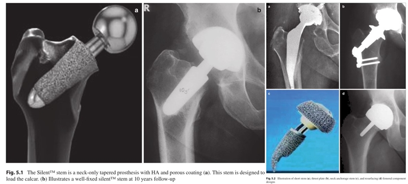 程度轻,且远离假体安放位置:近端固定短柄假体或小号骨水泥型假体。