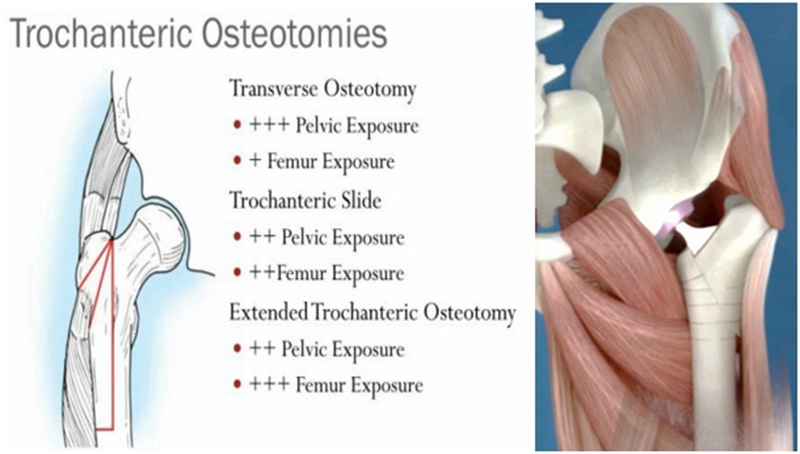 大粗隆尖与髋臼边缘撞击,如果在肢体等长情况下,撞击仍无法避免,需要考虑大粗隆滑移截骨。