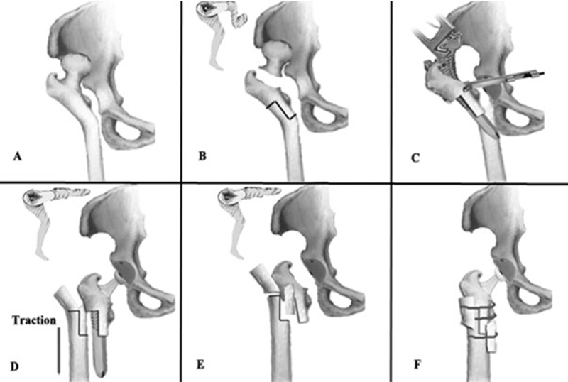 股骨近端截骨重建——截骨方式:横形、斜形、阶梯式及双V形截骨