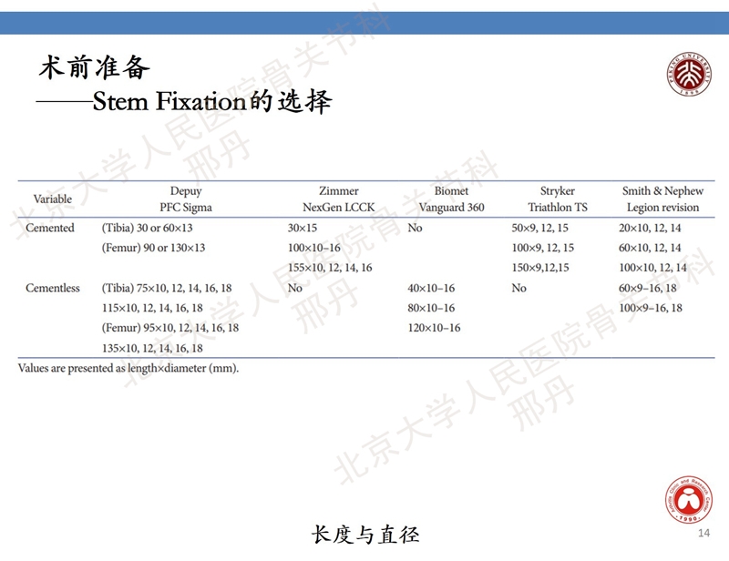 全膝膝关节置换术(TKA)作为终末期膝骨关节炎常规手术方式之一,在临床广泛应用,在TKA中,理想的人工关节置换在于关节稳定、假体位置和方位准确及模拟正常膝关节运动学三方面。在TKA翻修手术中,严重的骨缺损和软组织不足等是操作中常遇到的难题,在大多数TKA翻修术中,需要使用延长杆进行应力传导,将载荷从受损的关节和干骺端转移到剩余的胫骨皮质边缘,并广泛地分配增加的受限关节的应力,保证假体的长期稳定性。本文针对翻修中延长杆的选择进行介绍。
