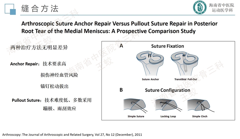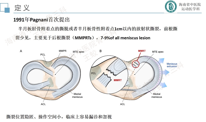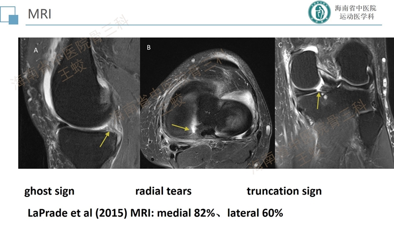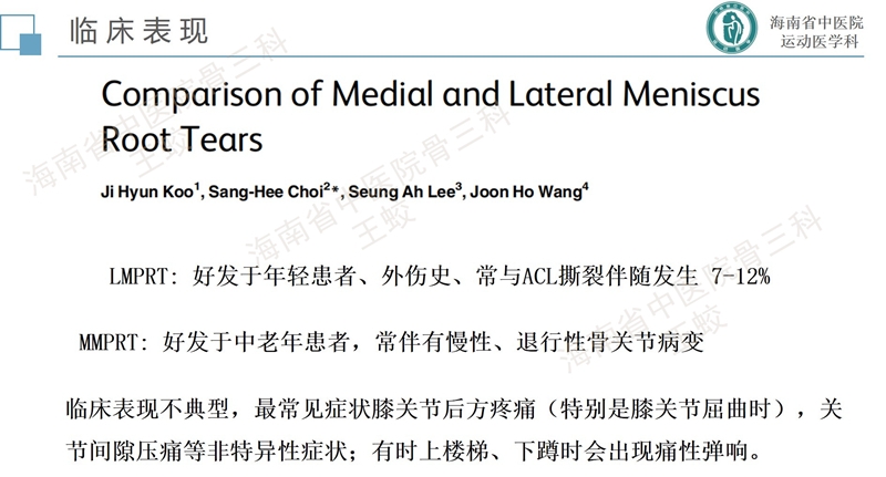 1、急性、创伤性根部撕裂(LMPRTs常见)是需要缝合的,可能同时伴有ACL、PCL等韧带损伤。