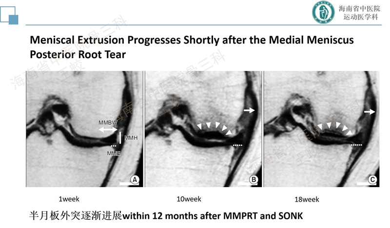 2、慢性、退变性根部撕裂(MMPRTs常见),可能合并有半月板的外突。