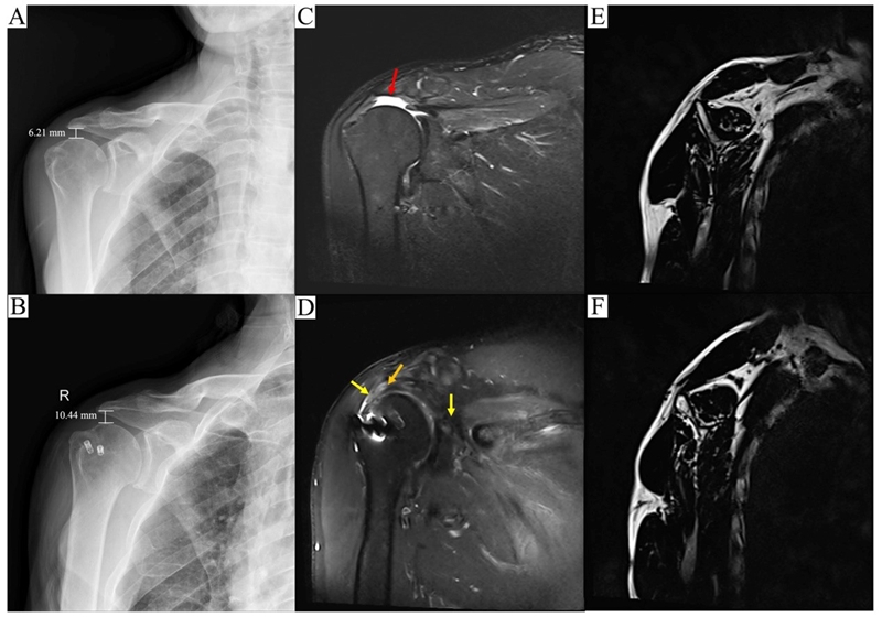 与此同时,该研究团队对2019年-2022年所有进行上关节囊重建和动力化上关节囊重建的不可修复巨大肩袖撕裂患者进行临床随访,所有患者随访时间至少1年,从短期临床疗效上看,动力化上关节囊重建患者的肩关节活动度和肩关节功能改善更为明显;从MRI结果上看,冈上肌腱脂肪化程度得到明显改善。