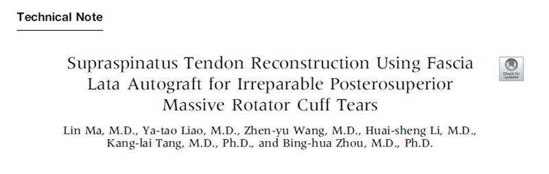 8.Ma, L., et al., Supraspinatus Tendon Reconstruction Using Fascia Lata Autograft for Irreparable Posterosuperior Massive Rotator Cuff Tears. Arthrosc Tech, 2023. 12(5): p. e629-e634.