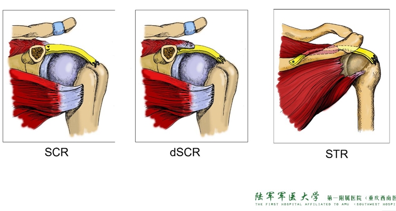 SCR:传统上关节囊重建技术;dSCR:动力化上关节囊重建技术;STR:冈上肌肌腱重建技术