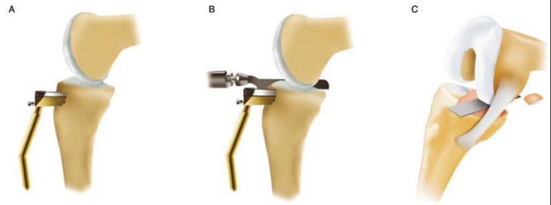 具体请参考Zhang Qidong, Liu ZH, Wang WG, Zhang Q, Cheng LM, Guo WS. A modified technique for tibial bone sparing in unicompartmental knee arthroplasty. Chin Med J (Engl) 2019; 132(22): 2690-2697.
